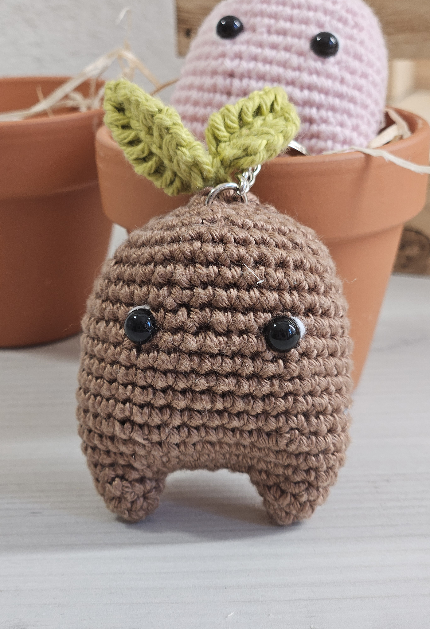 Elevée dans les serres de l’atelier, la P’tite Mandragore a grandit au fil du crochet. Cet alliée magique au format porte-clé peluche confectionnée avec soin en France, se présente comme un accessoire à la fois espiègle et attachant. Accrochez la P’tite Mandragore à vos clés pour une touche de féérie au quotidien.